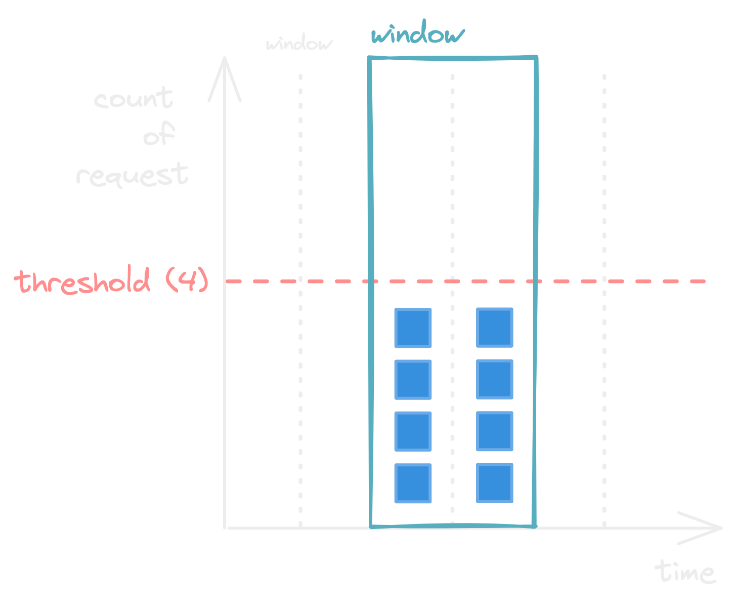 - 요청마다 카운터를 1씩 증가시킨다. 카운터의 값이 임계치(threshold)에 도달하면 새로운 요청은 새 윈도가 열릴 때까지 버려짐.