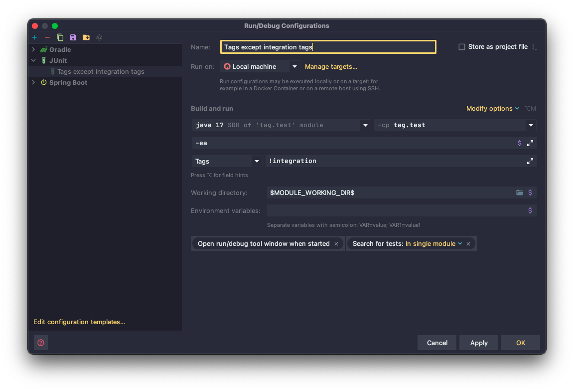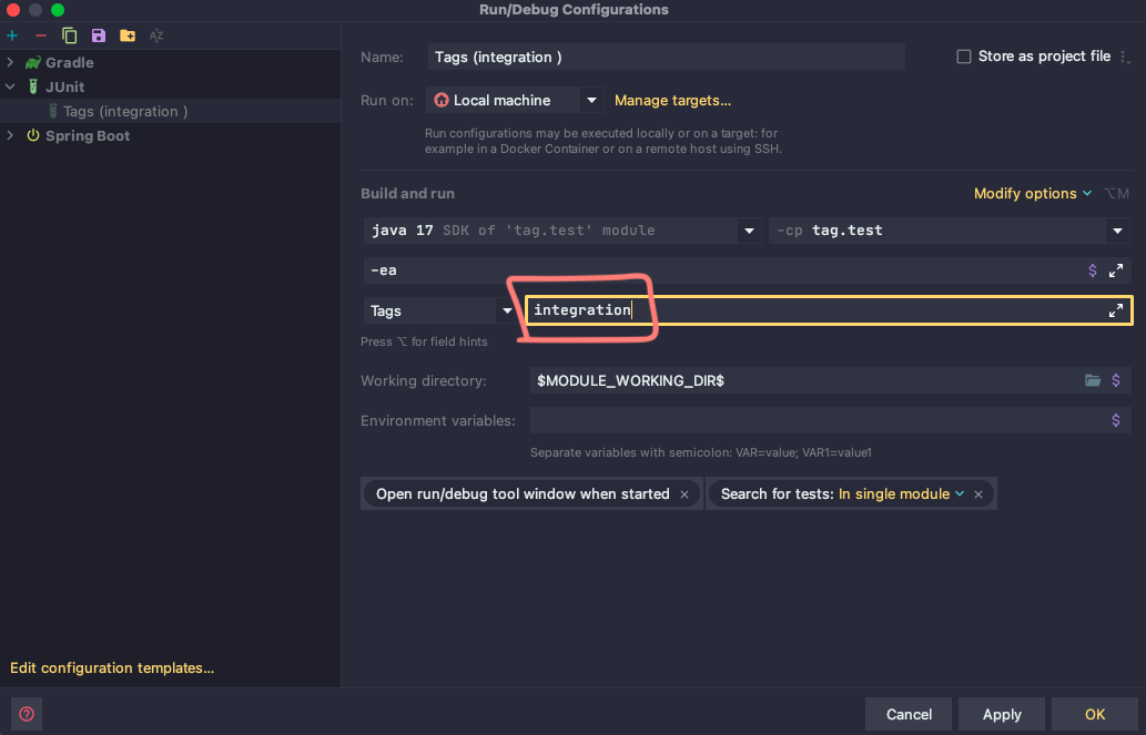Intellij에서도 test 시, Tag를 사용할 수 있습니다.