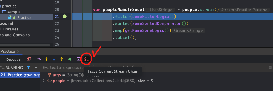 IntelliJ IDEA에서는 Stream debugging 시 시각적으로 데이터를 확인할 수 있는 기능을 제공하고 있는데, 이게 정말 편리하다. 이를 활용해보자.