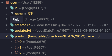 이렇게 One-To-Many 관계를 구성할 수 있고, 이렇게 만든 메서드를 통해 user를 조회하면 연결된 post도 함께 가져올 수 있다.