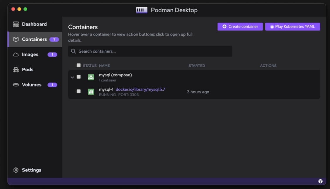 $ podman run -d -p 3306:3306 docker.io/library/mysql:5.7