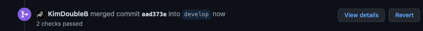 PR이 머지된 이후 아래 같은 로그가 남는데, 버튼 중 Revert 를 누르면 해당 PR 작업의 Revert commit PR을 바로 생성할 수 있다.