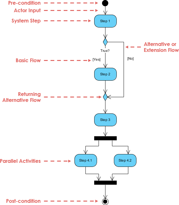 활동 다이어그램 같은 표기법을 이용해 작업 흐름을 기록해보자.