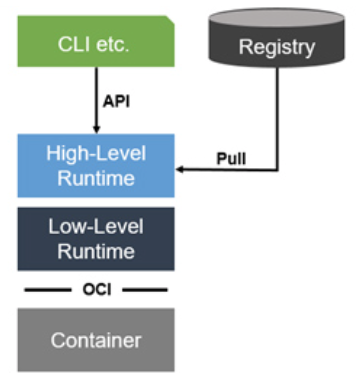 - 상위 수준의 컨테이너 런타임인 docker, containerd, CRI-O는