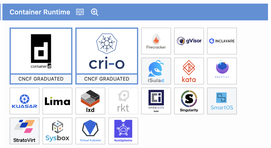 컨테이너 런타임도 종류가 엄청 많은 것을 볼 수 있다.