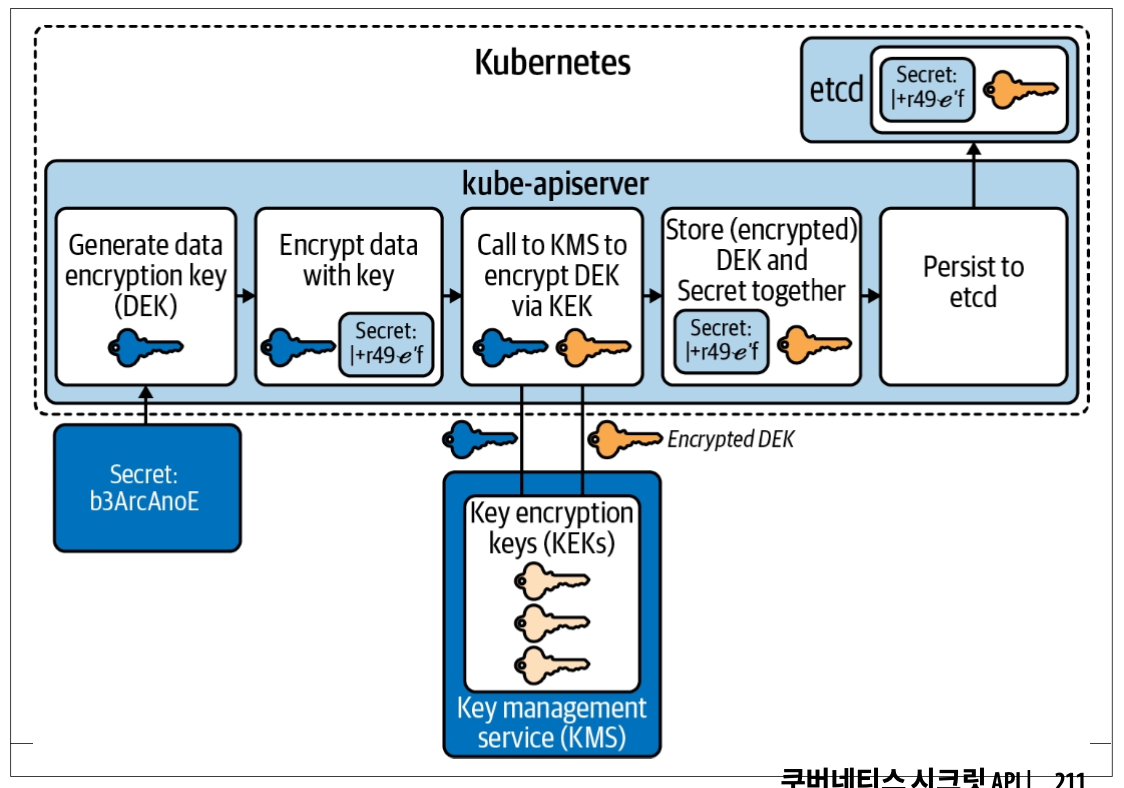 쿠버네티스 API는 애플리케이션 실행 중 시크릿에 접근하는 방법이다.