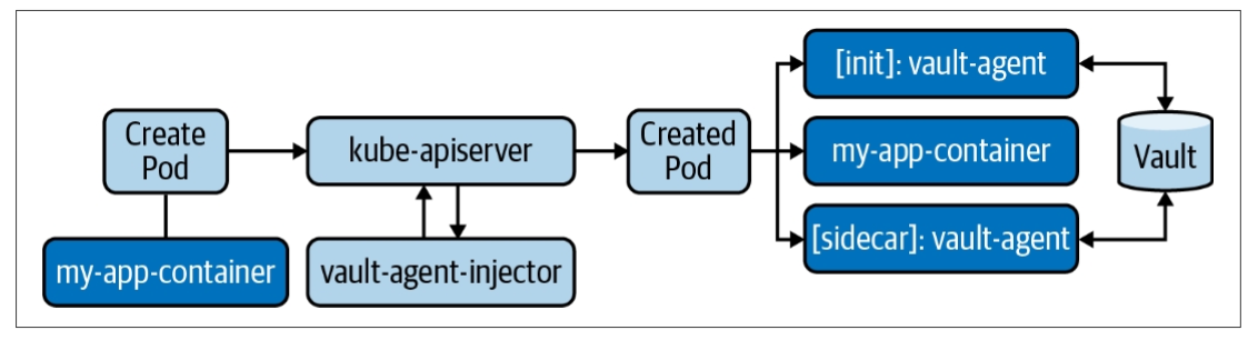 - kube-api-server와 통신하며 시크릿을 검색하고, 이를 어떻게 주입하고/사용할지에 대한 책임을 애플리케이션에 넘긴다.