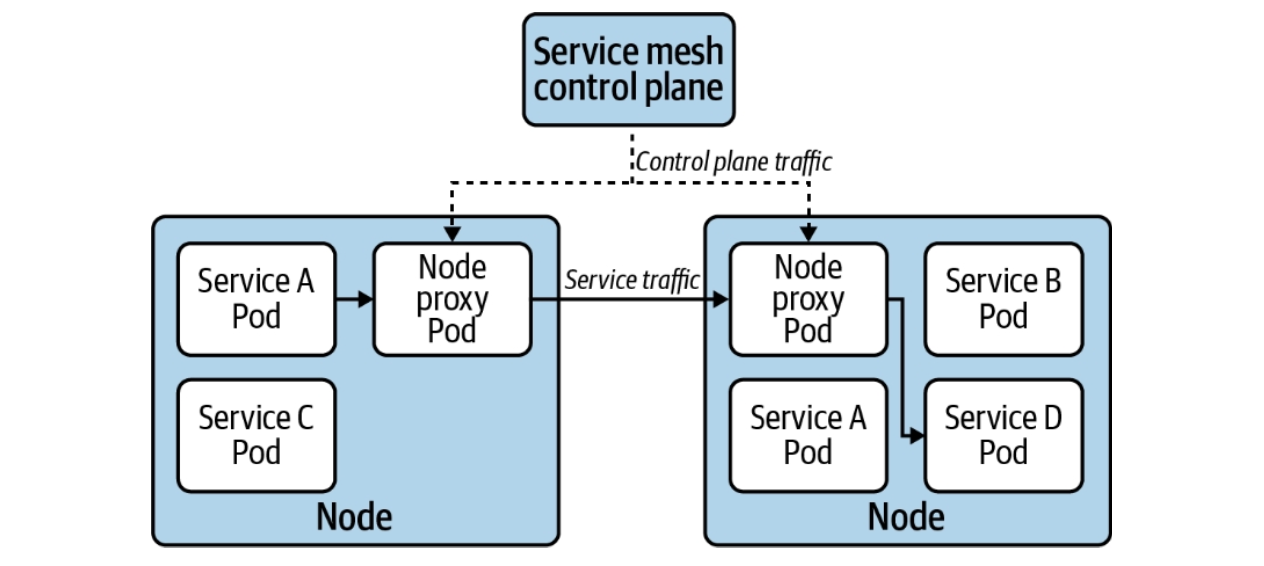 sidecar proxy를 이용하는 데이터 플레인 아키텍처를 이야기했지만, 노드 레벨의 proxy를 이용하는 방법도 있다.