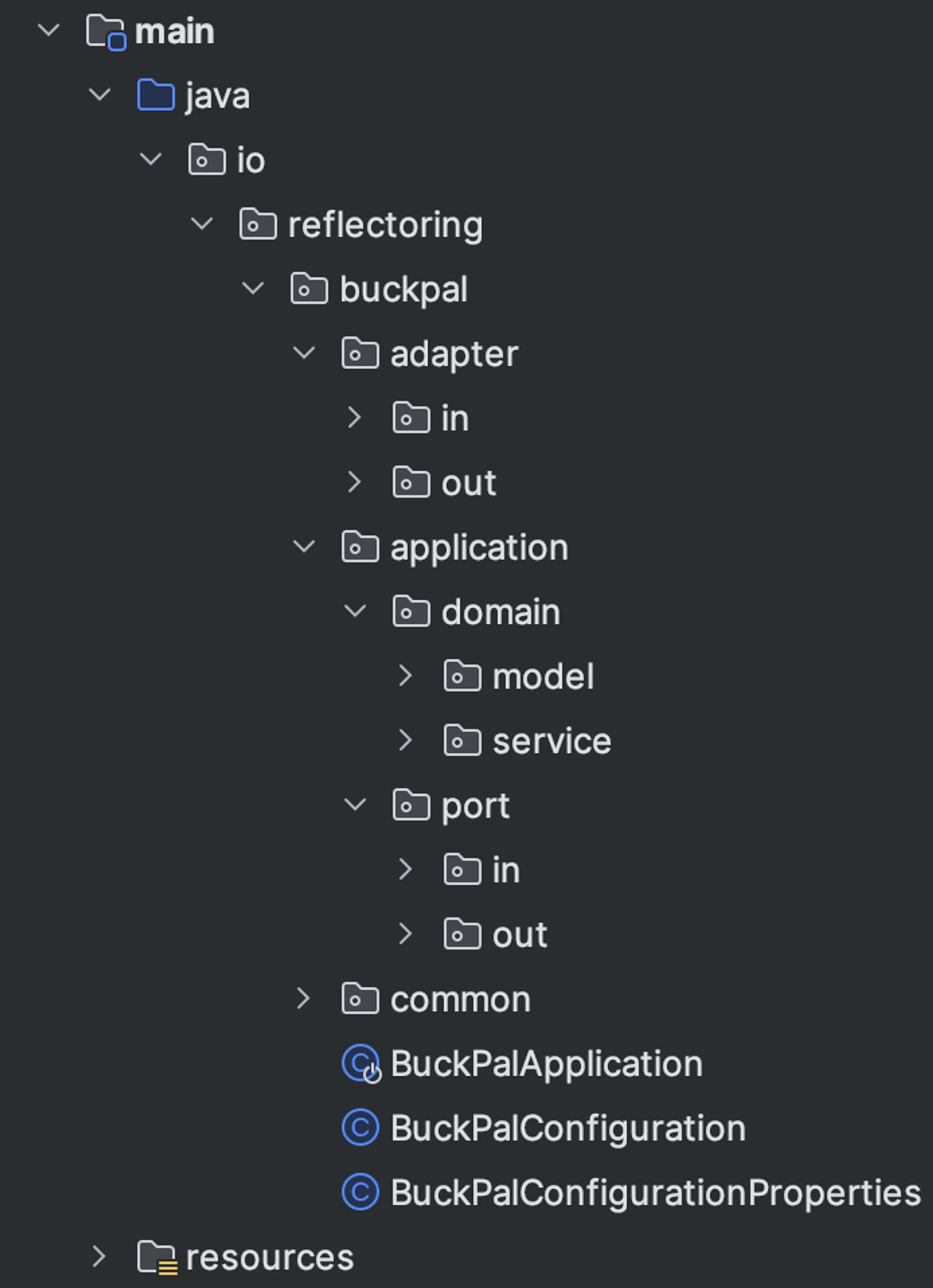 단순하게 생각한다면 하나의 프로젝트/모듈로 Adapter, Domain, Application, Common으로 나눠 구성을 할 수 있다.