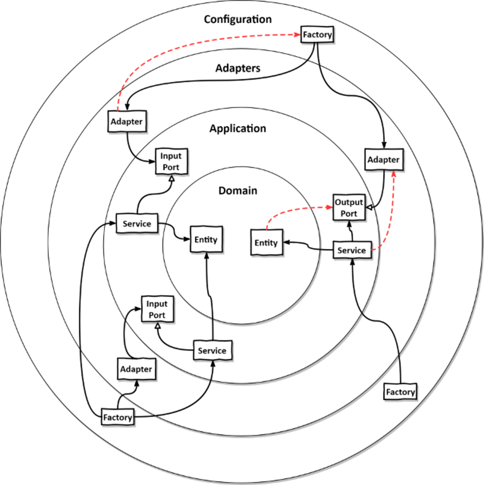 - application.domain.service에서는 port를 의존하되 그 구현체를 직접적으로 의존해서는 안된다. 즉, adapter package는 알 필요가 없고, 의존해서는 안된다.