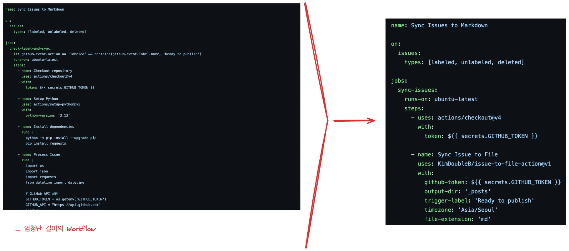 맨 처음에 직접 Github action에 모든 코드를 작성했을 때보다 훨씬 간결해진 것을 볼 수 있어요.