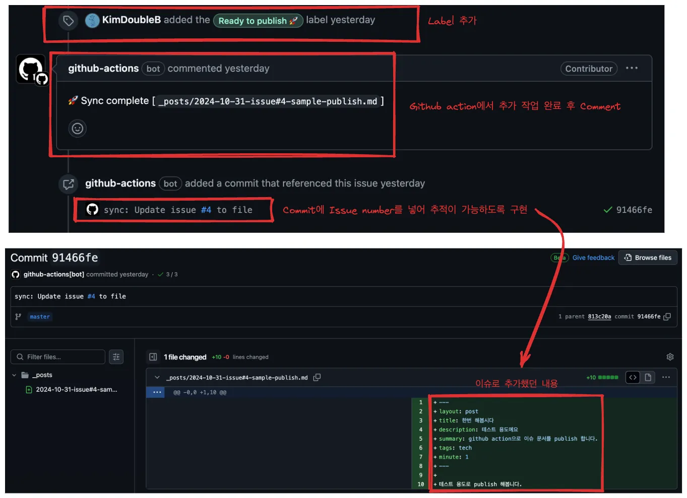 그래서 Github issue로 작성한 글을 바로 파일로 동기화 시켜서 Repository에 추가해보자 라고 생각하게 됬습니다.