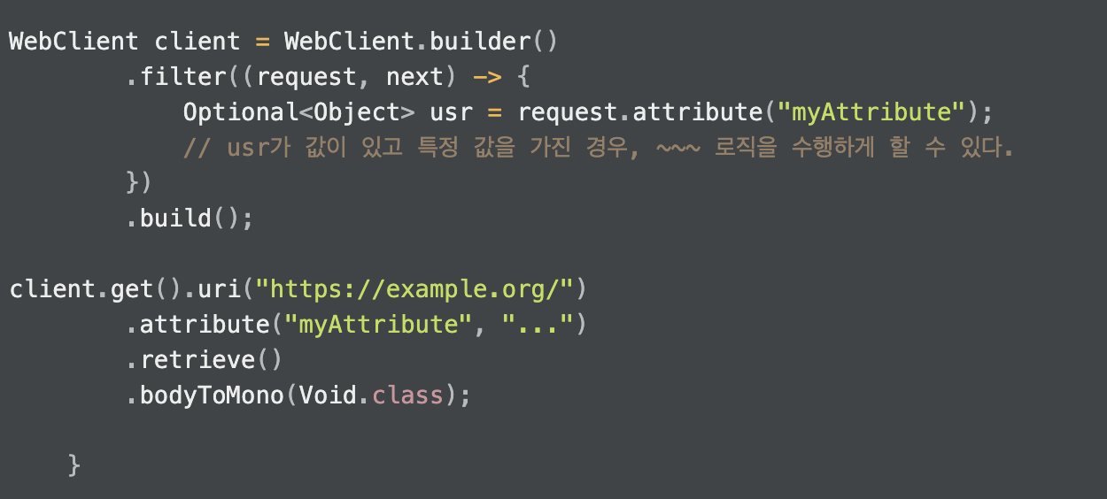 WebClient 사용 시, Request에 attributes를 추가할 수도 있다.