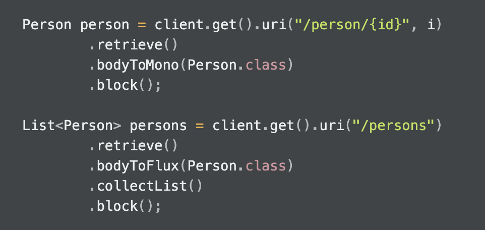 WebClient 는 기본적으로 비동기로 작동한다. 하지만, 만약 동기로 작동하게 만들고 싶다면 block() 을 사용하면 된다.