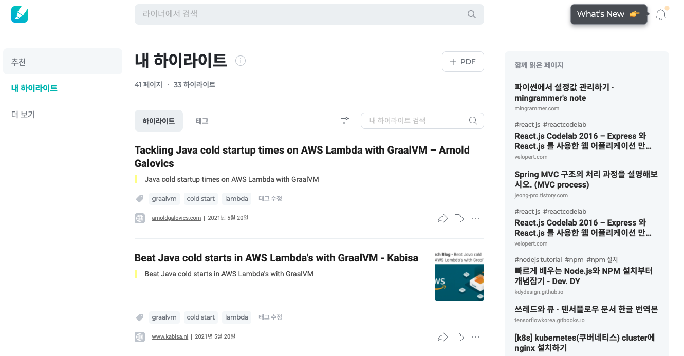이런 것에 있어 LINER 라는 서비스를 보게 되었고, 요즘 제일 많이 사용하는 것 같다.